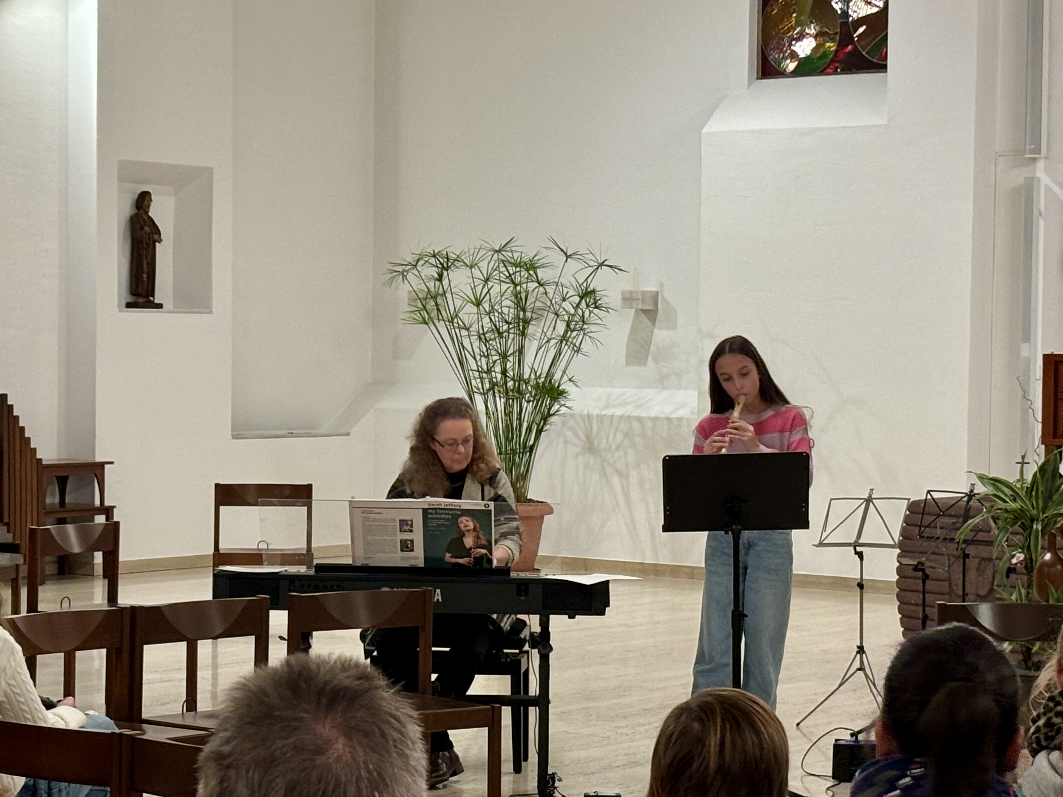 Musizierstunde R. Sudhaus (Blockflöte), M. Binkert (Cello) und J. Sentieiro (Gitarre) 25.11.2025 in der Kath. Kirche Stein